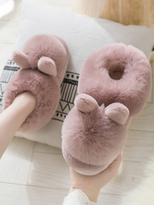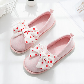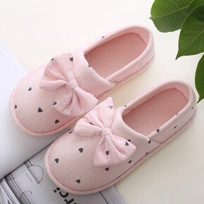 棉拖鞋女冬包跟室内防滑保暖居家可爱蝴蝶结厚底毛绒情...