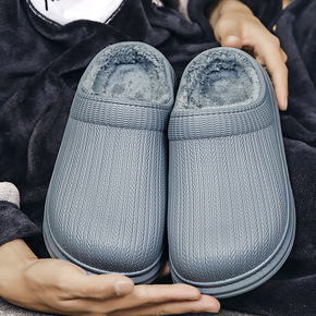 批发防水包跟棉拖鞋男厚底女踩屎感加绒软保暖冬季室内...