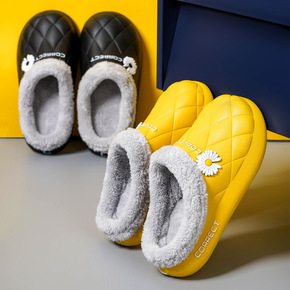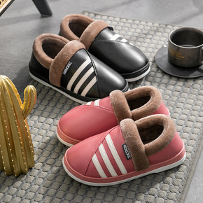 2021秋季新款棉拖鞋女纯色防水保暖加绒棉鞋男士厚...