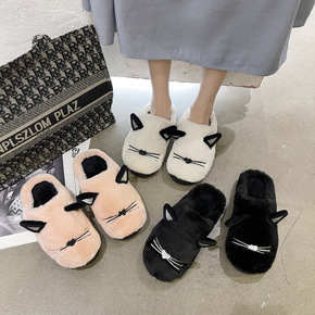 2021秋季猫咪棉拖鞋女厚底情侣居家居韩版室内包跟...
