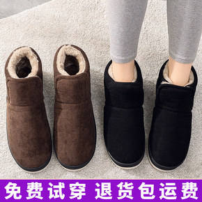 老人加绒保暖棉拖鞋冬季女包跟居家家用室内厚底毛毛男...
