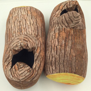 原木树桩棉拖鞋 创意树木造型保暖包跟 冬天家用室内...