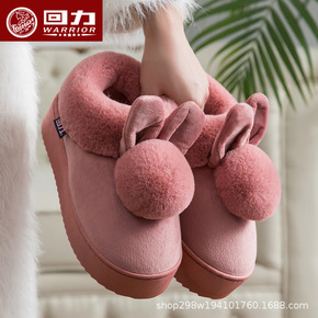 正品回力包跟棉拖鞋女居家保暖毛绒超厚底月子鞋男室内...