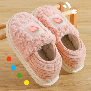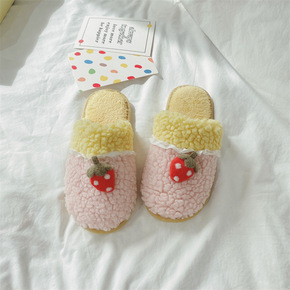 可爱少女心小草莓家居室内地板棉拖鞋厚底包跟棉鞋可外...