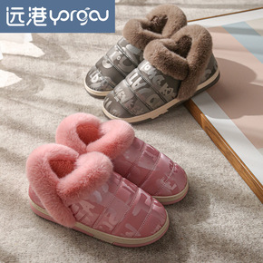 棉拖鞋女包跟可爱毛绒秋冬季家居家用男情侣室内防滑冬...