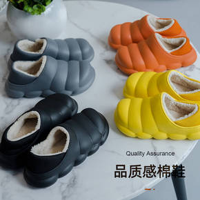 冬季防水棉拖鞋家用圆头现货缝制鞋均码白色室内秋冬季...