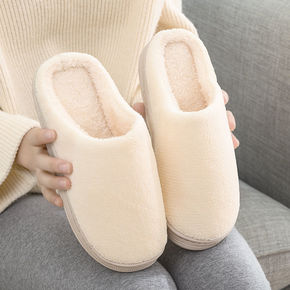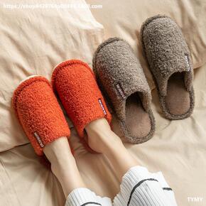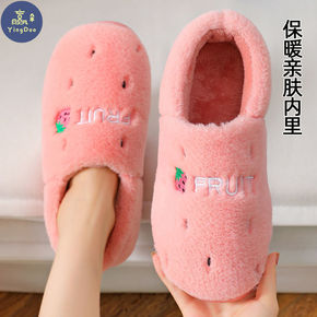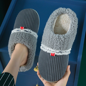 新款秋冬季羊皮棉拖鞋女卧室保暖加绒厚底家用防滑情侣...