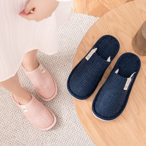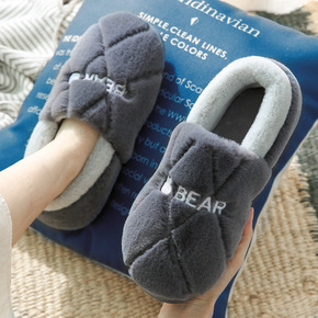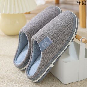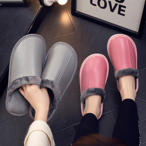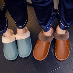 牛皮面居家厚底室内防滑情侣棉拖鞋女冬季防水家用地板...