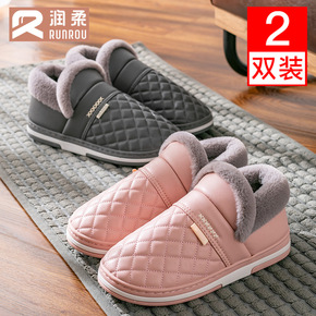 棉拖鞋女秋冬天包跟室内保暖pu皮防水防滑家居家用情...