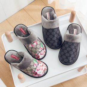 新款棉拖鞋女冬季家用毛绒保暖牛筋底花拖鞋情侣防滑室...