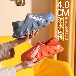 防水棉拖鞋男士冬天家用包跟厚底保暖防滑家居室内男款...
