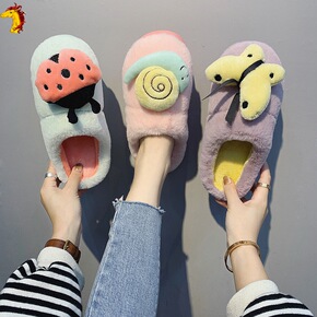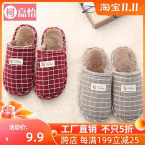 秋冬季家居家用情侣儿童棉拖鞋男女士室内地板毛绒绒可...