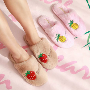 新款棉拖鞋女高跟厚底可爱室内家居毛拖鞋冬保暖时尚外...