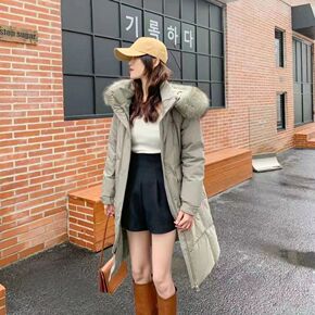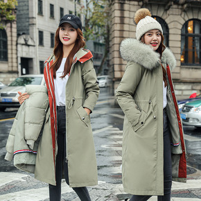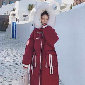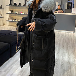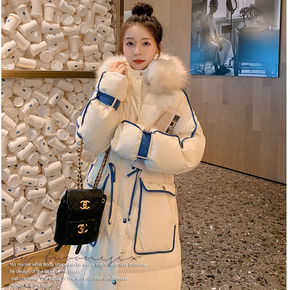 大毛领羽绒棉服女中长款2021冬装新款韩版宽松过膝...