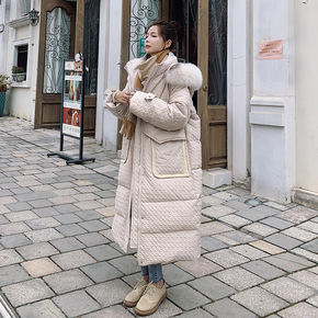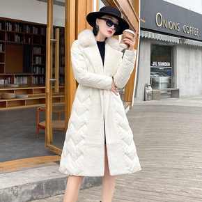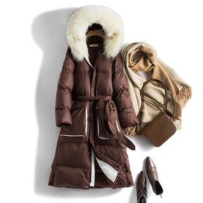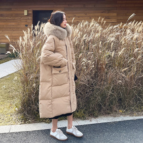 温柔系羽绒服 东大新款真毛领白鸭绒中长款羽绒服女过...