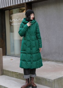 羽绒服女中长款修身显瘦过膝2021新款连帽加厚保暖...