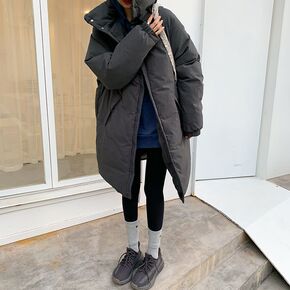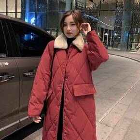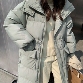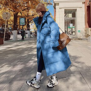 2021新款百搭羽绒棉服女冬长款过膝收腰韩版宽松加...
