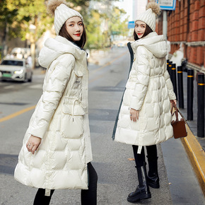 2020年冬季新款韩版修身棉衣女士过膝长款连帽羽绒...