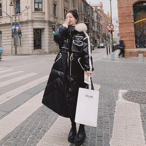 长款羽绒棉服女2022年秋季新款宽松系带收腰过膝加...