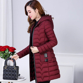 速卖通新款棉衣女中长款羽绒棉服女韩版修身连帽棉袄外...