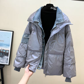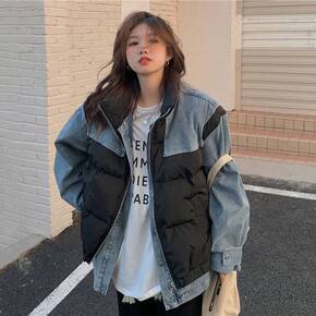 气质拼接牛仔假两件羽绒棉服女·-冬季加厚大码棉衣外...