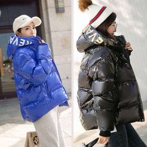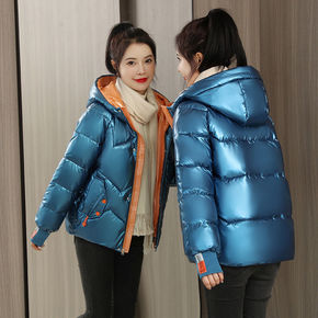 羽绒棉服女亮面2021韩版棉衣短款冬季宽松加厚连帽...
