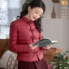 复古中国风盘扣立领短款羽绒棉服女冬唐装2022新外...