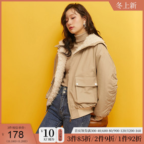 奶系羊羔毛棉服女冬加绒加厚两面穿外套设计感小众ch...