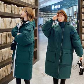 韩版oversize羽绒棉服女冬中长款过膝加厚棉衣...