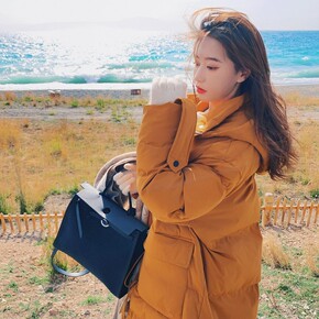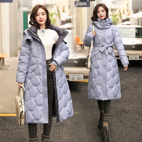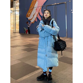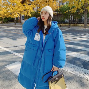 2021新款蓝色羽绒棉服女中长款加厚过膝冬季韩版宽...
