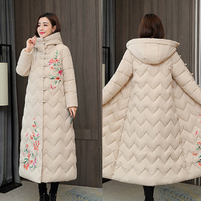 民族风羽绒棉服女中长款新款刺绣过膝棉袄风棉衣盘扣连...