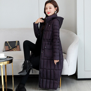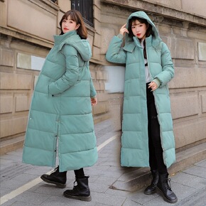 过膝羽绒棉服女中长款棉袄冬季新款宽松大码连帽加厚保...
