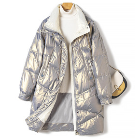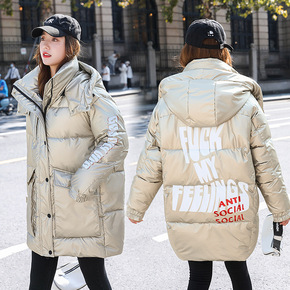 炫彩亮面羽绒棉服女中长款过膝2021冬季韩版宽松加...