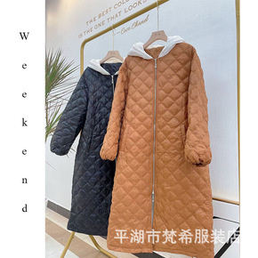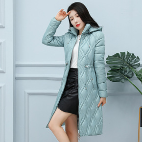 2021冬季新款女装棉服韩版修身轻薄中长款过膝棉衣...