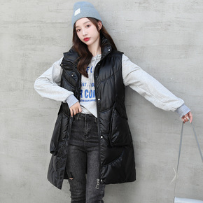 实拍亮面棉服女2020新款韩版宽松中长款过膝羽绒棉...