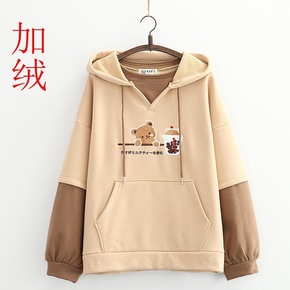 盐系加绒卫衣女2020秋冬新款宽松慵懒风少女学生保...