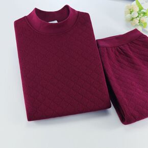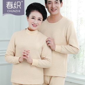 TZ09空气层夹棉秋衣秋裤套装高低领纯色中老年人棉...
