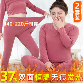 无痕恒温保暖内衣女套装加绒发热大码胖mm200斤秋...