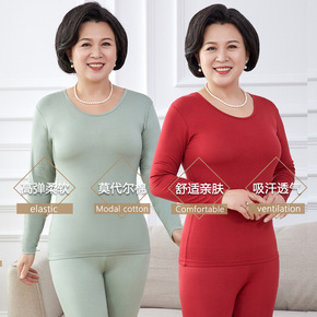 女士莫代尔棉秋衣秋裤中老年人妈妈棉毛衫保暖内衣女打...