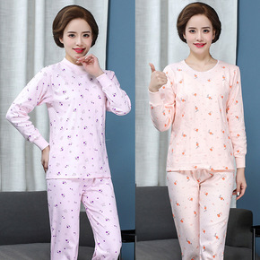 女士秋衣秋裤长袖打底衫薄款女纯棉保暖内衣妈妈大码棉...