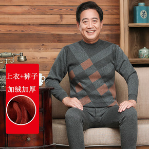 中老年保暖内衣套装男士纯棉加绒秋衣秋裤女套头睡衣老...