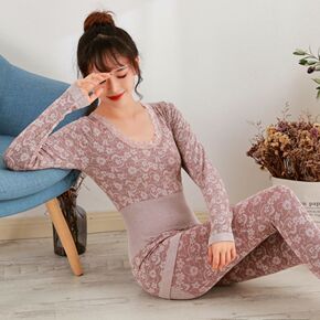 加厚细绒保暖内衣女套装纯棉秋衣秋裤大码修身棉毛衫秋...