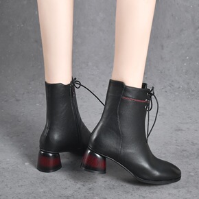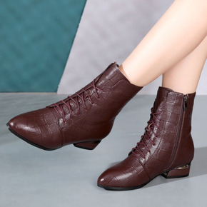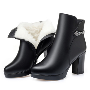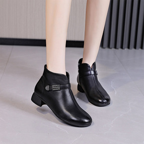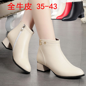 冬季新款真皮短靴女单靴冬季加绒棉靴中跟粗跟女皮鞋大...