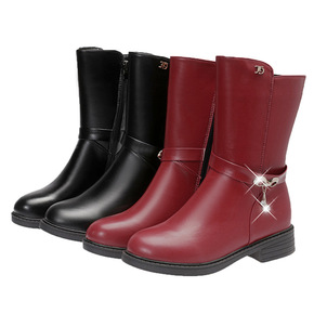 中年妇女短靴冬中跟粗跟加绒羊毛防滑时尚韩版女士妈妈...