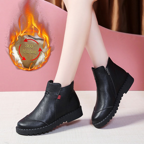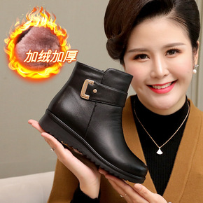 冬季妈妈鞋棉鞋加绒保暖中年短靴中老年女鞋平底防滑皮...