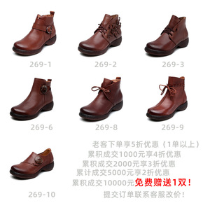 上海杰骤冬季热卖粗跟女靴 复古高帮棉鞋 头层牛皮彩...