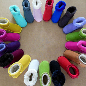 包邮冬季保暖加厚底牛皮大红色婚鞋子雪地靴女靴子58...