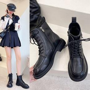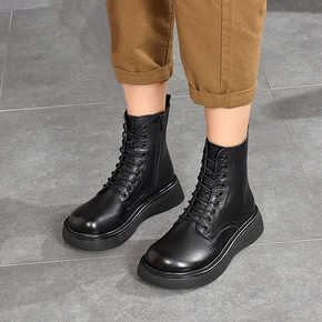 真皮短靴子2021秋季新款英伦风时尚复古休闲皮靴女...