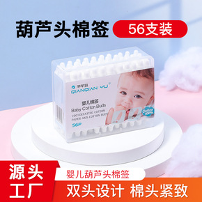 芊芊羽婴儿棉签56支罐装 葫芦头棉签双头两用纸轴棉...