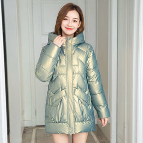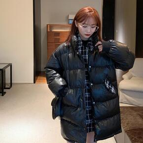 免洗亮面羽绒棉服女中长2021年冬新款韩版宽松棉衣...